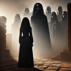 A figure emerged, shifting between countless faces—young, old, scarred, and smooth. Voices layered upon one another, blending in a haunting chorus.